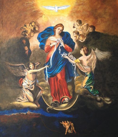 Con ellos, tras diez días de oración y recogimiento, recibe el Espíritu Santo. Y cuando los apóstoles se dispersan por el mundo para llevar el mensaje de Cristo, Ella queda encomendando su labor y en espera siempre del primero que vuelva o la necesite, ofreciéndole el cariño de Madre y de Reina. En nuestras tareas apostólicas sintámonos respaldados siempre por la ayuda de la Virgen.