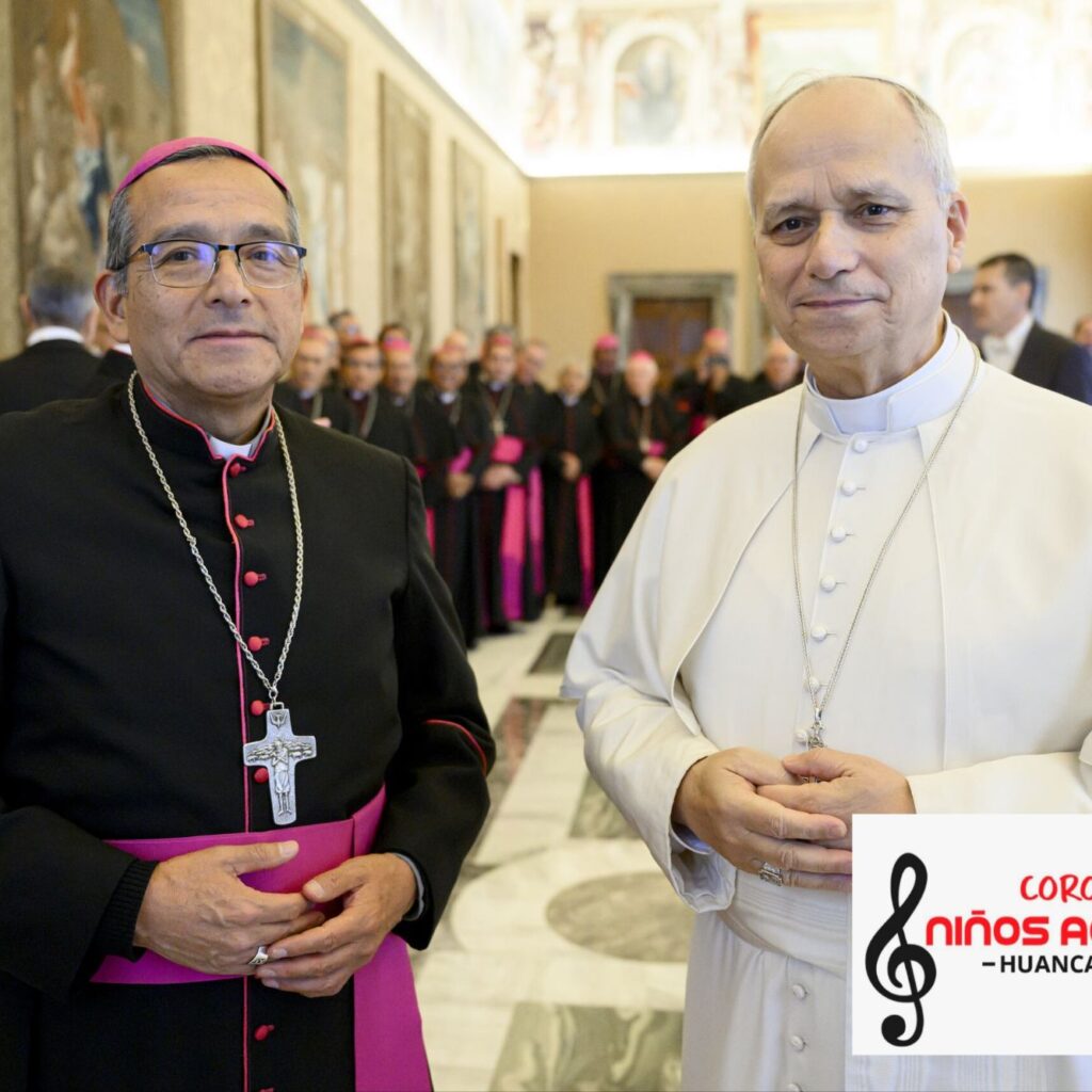 El Papa León escuchó atentamente el comentario que nuestro obispo le hacía acerca del trabajo de recuperación y puesta en valor de los villancicos en quechua que nuestro coro viene realizando desde el año 2011, en los andes centrales del Perú.