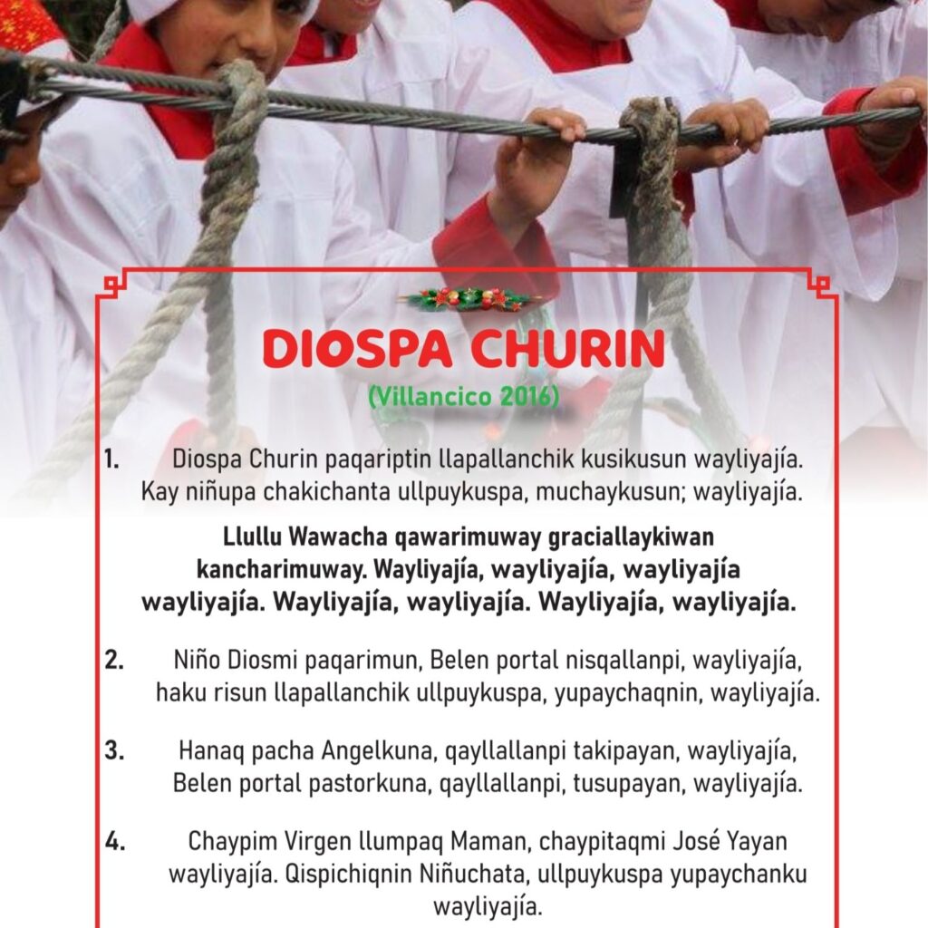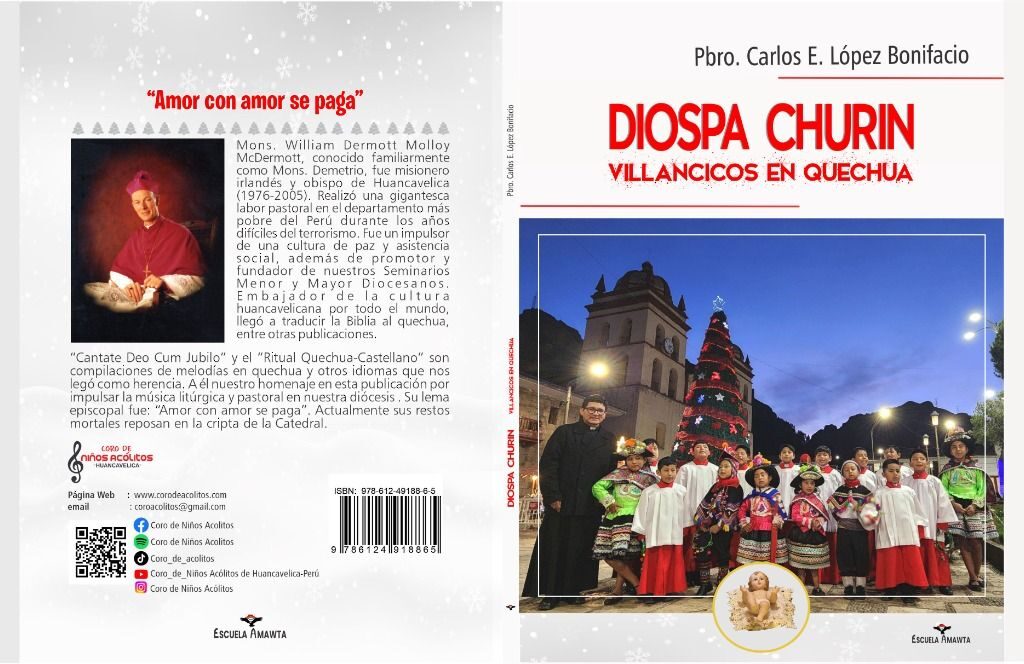 Con inmensa alegría, se acaba de publicar el libro «Diospa Churin, Villancicos en Quechua» cuyo autor es el Pbro. Carlos Esteban López Bonifacio, director del Coro de Niños Acólitos.