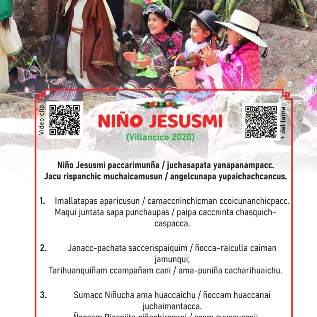 Se trata del resultado de más de diez años de trabajo con el coro huancavelicano, ya que el libro recoge nueve villancicos en quechua, uno en español y un canto de adviento. Todos con sus respectivos códigos QR que remiten a los videos elaborados y lanzados a las redes sociales de manera ininterrupida desde el año 2016.